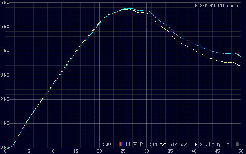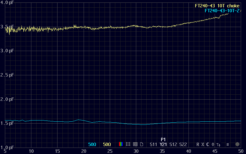 compares port 1 shunt capacitance for similar chokes made and measured